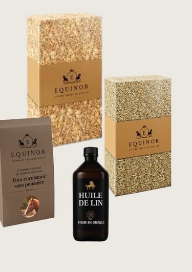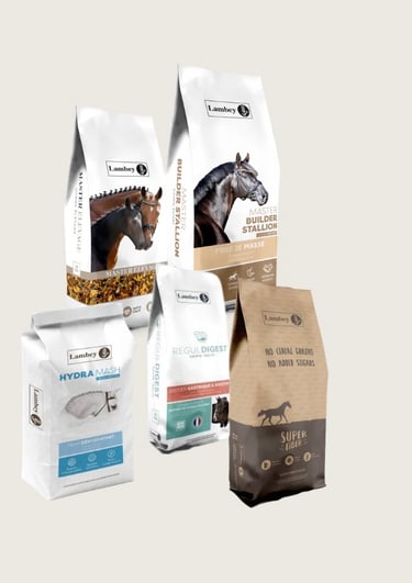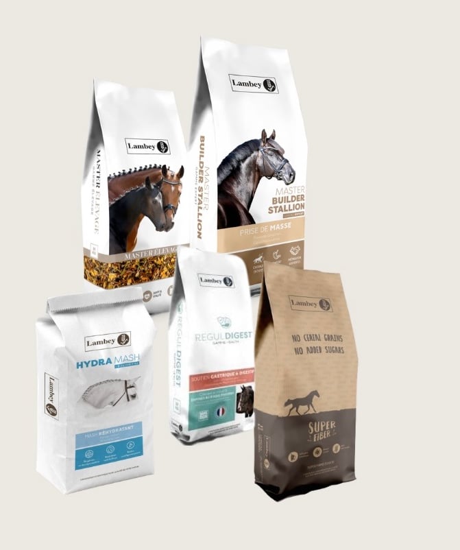 🌾 Aliments équins (marque Lambey) avec commande sur mesure selon le profil de votre cheval ;